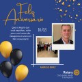 Companheiro Marcio Braz, todos os associados do Rotary Club de Rio Verde 5 de Agosto o cumprimentam pelo seu aniversário, desejando-lhe muita saúde, alegrias, e as bençãos de Deus em sua vida.