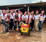 A manhã do último sábado (09/12) na comunidade de São Benedito, no Setor Primavera, marcou a realização de mais uma edição do Natal Solidário realizado pela Casa da Amizade do Rotary Club de Piracanjuba. O Evento é uma ação em conjunto com o Rotary Club e já se tornou uma tradição naquela comunidade. Além de muita alegria, o Natal Solidário proporcionou uma manhã muito agradável aos presentes e principalmente às crianças com brinquedos, um delicioso lanche, refrigerante, picolés e muito mais. As presidentes Lenizia Canedo e Vera Marques do Rotary Club de Piracanjuba e Casa da Amizade respectivamente estiveram a frente, juntamente com as demais companheiras, este momento que foi de muita alegria celebrando a magia do Natal e levando muito calor humano àquela comunidade. Parabéns a família Rotária de Piracanjuba que mais uma vez fez valer a amizade e o companheirismo.