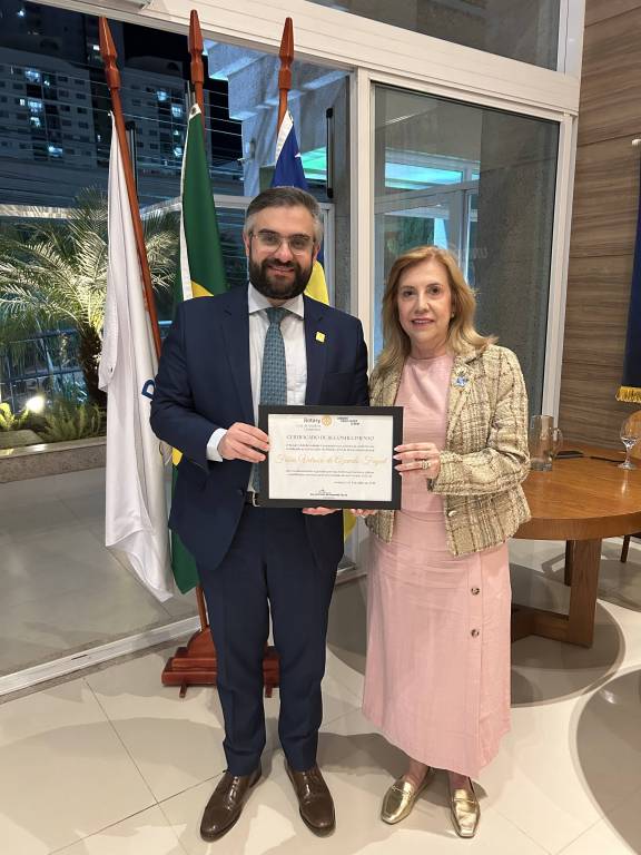 Entre as presenças ilustres, destacou-se a do Governador do Distrito 4770, Fábio Fayad, associado honorário do clube. Em seu pronunciamento, visivelmente emocionado, Fábio destacou o privilégio de participar da reunião conduzida por sua mãe, a presidente Maria Elizete, e relembrou com gratidão sua trajetória junto ao Goiânia-Centenário, desde as primeiras reuniões que deram origem ao clube. Mencionou ainda o valor afetivo da presença de seu irmão, José Fayad Neto, reafirmando os laços familiares e rotários que unem e fortalecem o grupo, assim como a estima que nutre por todos os companheiros que compõem o clube — grandes amigos pessoais, segundo ele, e exemplo de dedicação ao ideal de servir.