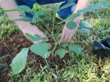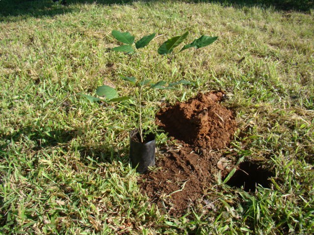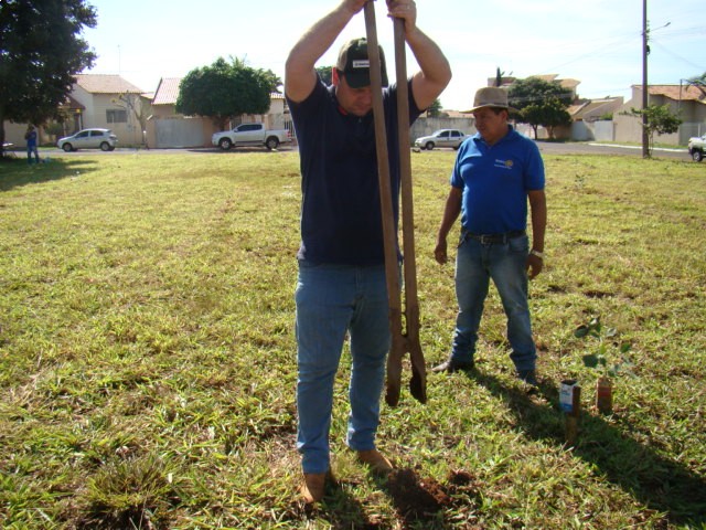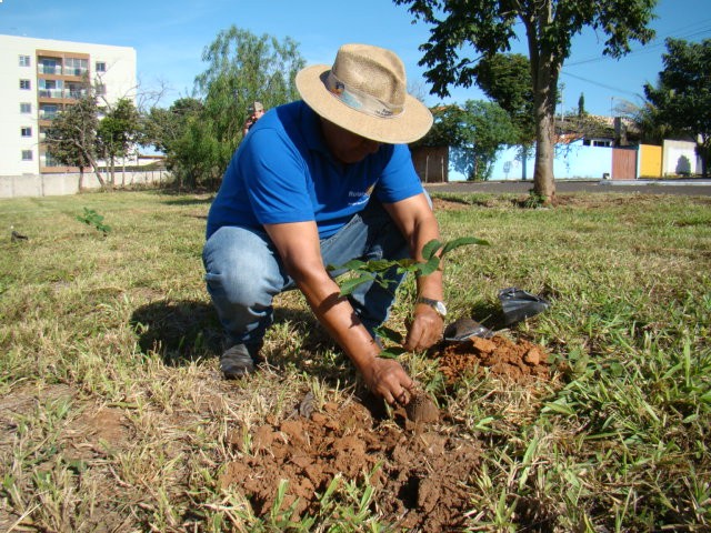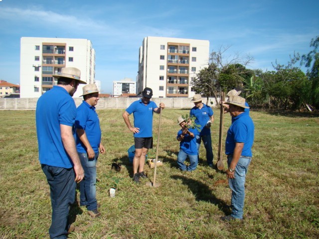 Foram plantados Ipês Rosa e Jacarandás, feito o plantio, colocamos estacas para sinalizar e proteger as mudas, além de controle de pragas para evitar perdas.