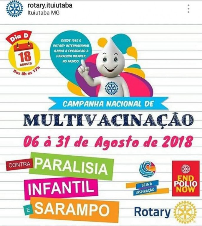 Na festa da padroeira da cidade, tradicionalmente os associados do Rotary Club de Ituiutaba trabalham como voluntários no serviço de garçom. Na oportunidade foram distribuídos panfletos sobre a campanha de vacinação e também durante a festa uma apresentação no data-show com vídeo e fotos do trabalho do Rotary no mundo.