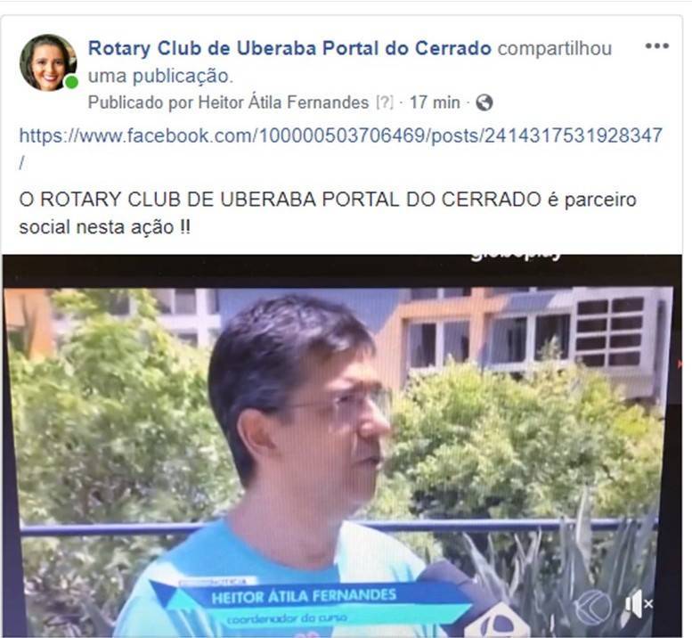 Ação social apoiada pelo ROTARY CLUB DE UBERABA PORTAL DO CERRADO é destaque na GLOBO