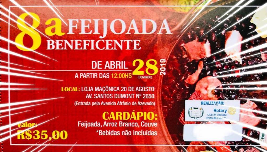 Realizada dia 28 de abril, com renda para a Creche Pequena Casa de Maria e Fundação Rotária (campanha contra a paralisia infantil), a tradicional feijoada tem como principal parceira a Loja Maçônica 20 de Agosto que cede seu salão de festas e cozinha gratuitamente.