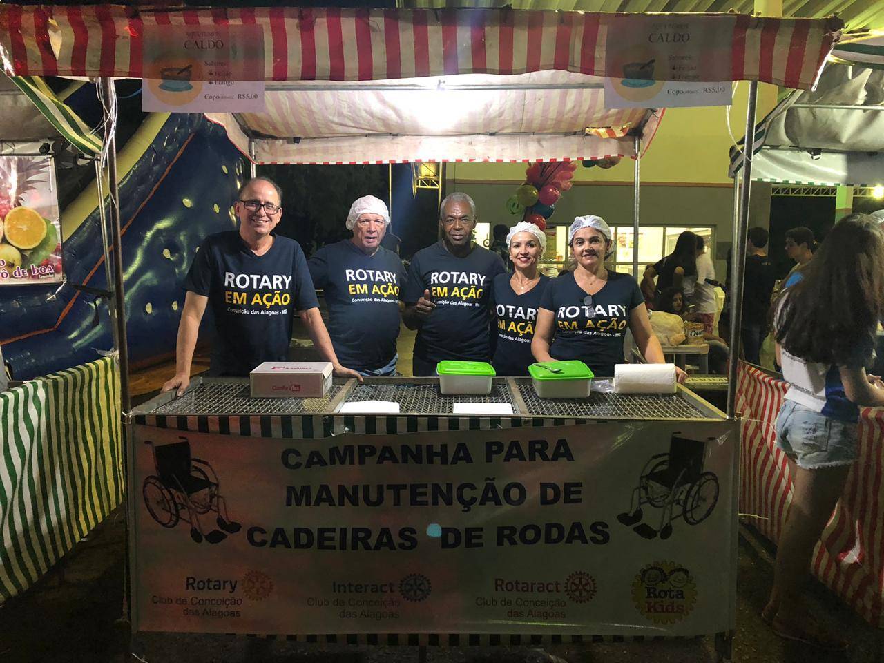 Foi realizado no dia 30/04/2019 a 1ª Barraca de Caldos do Rotary, dia este, para celebrarmos o dia dos trabalhadores da cidade. Também esteve presentes as barracas do Rotaract com batatas no cone e Interact com cachorro quente.