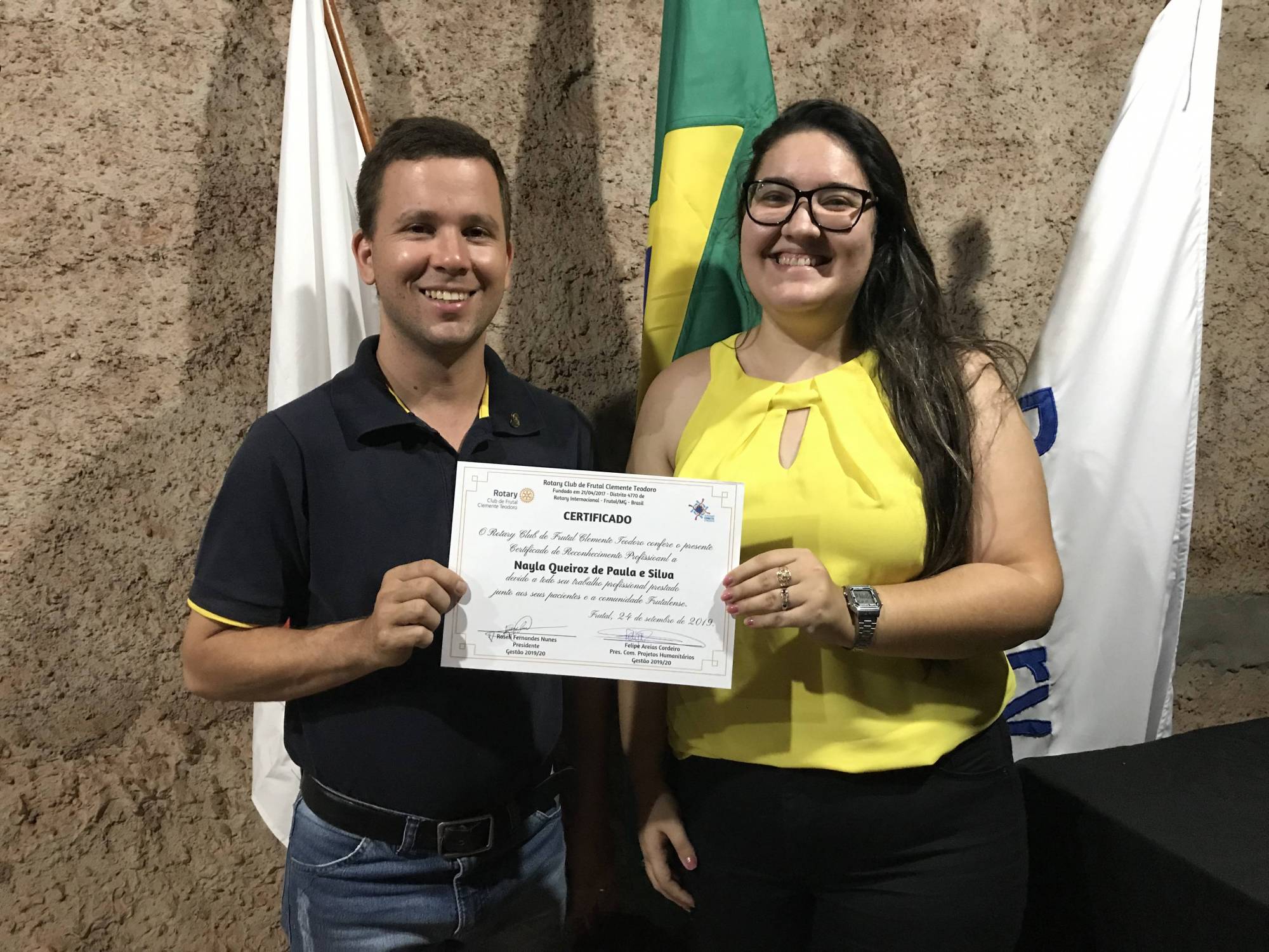 Na reunião de ontem, tivemos o prazer de receber a Psicóloga Nayla Queiroz associada ao Rotaract Club de Frutal “Juca Azevedo”, para receber um reconhecimento profissional por ser destaque na comunidade. Ela ministra varias palestras gratuitas em escolas estaduais. Ela contou um pouco sobre sua profissão, os principais desafios e falou sobre “Suicídio”. Abordamos esse tema por estarmos no mês de Setembro e ser celebrado o Setembro Amarelo. Este bate papo foi de extrema importância, pois os associados conversaram sobre o assunto e tiraram suas dúvidas.